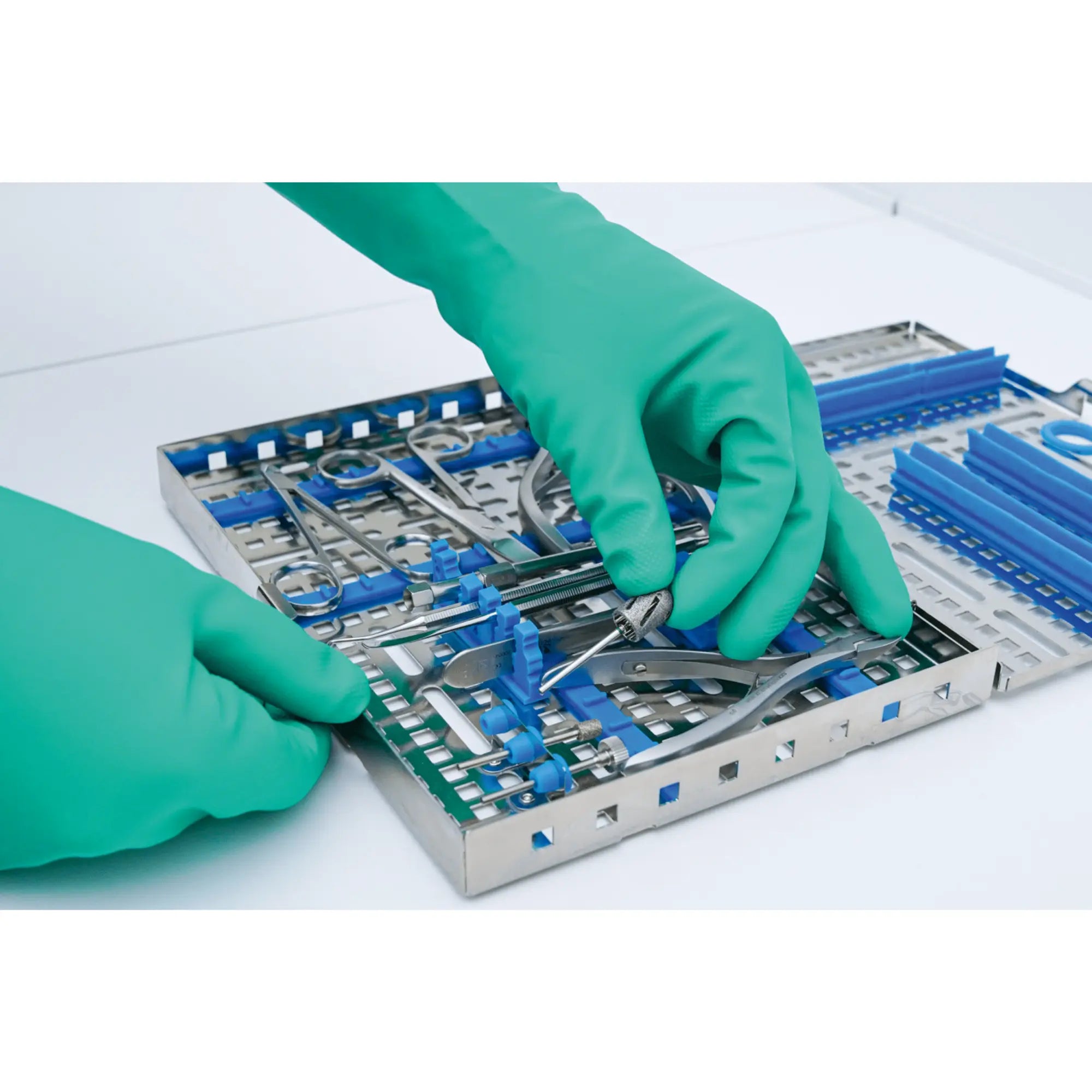Instruments are held securely in place thanks to the adjustable silicone inserts.