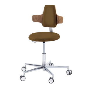 En option, deux dossiers dans différentes versions en bois façonné de haute qualité (noyer ou laminé blanc) avec une surface résistante aux désinfectants. Les chaises sont expédiées en kit.